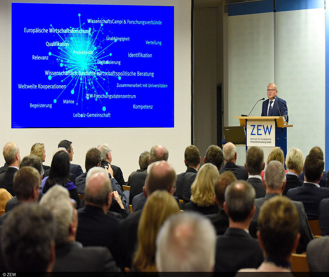 Termine und NachrichtenZum Festakt des 25-jährigen Jubiläums des Zentrums für Europäische Wirtschaftsforschung (ZEW) in Mannheim hat der ehemalige ZEW-Präsident Prof. Dr. Dr. h.c. mult. Wolfgang Franz die Abschlussrede gehalten. In seinem Festvortrag ließ er wichtige Stationen der ZEW-Geschichte Revue passieren und spannte den Bogen zu den aktuellen und künftigen Herausforderungen, die auf das Institut zukommen werden.