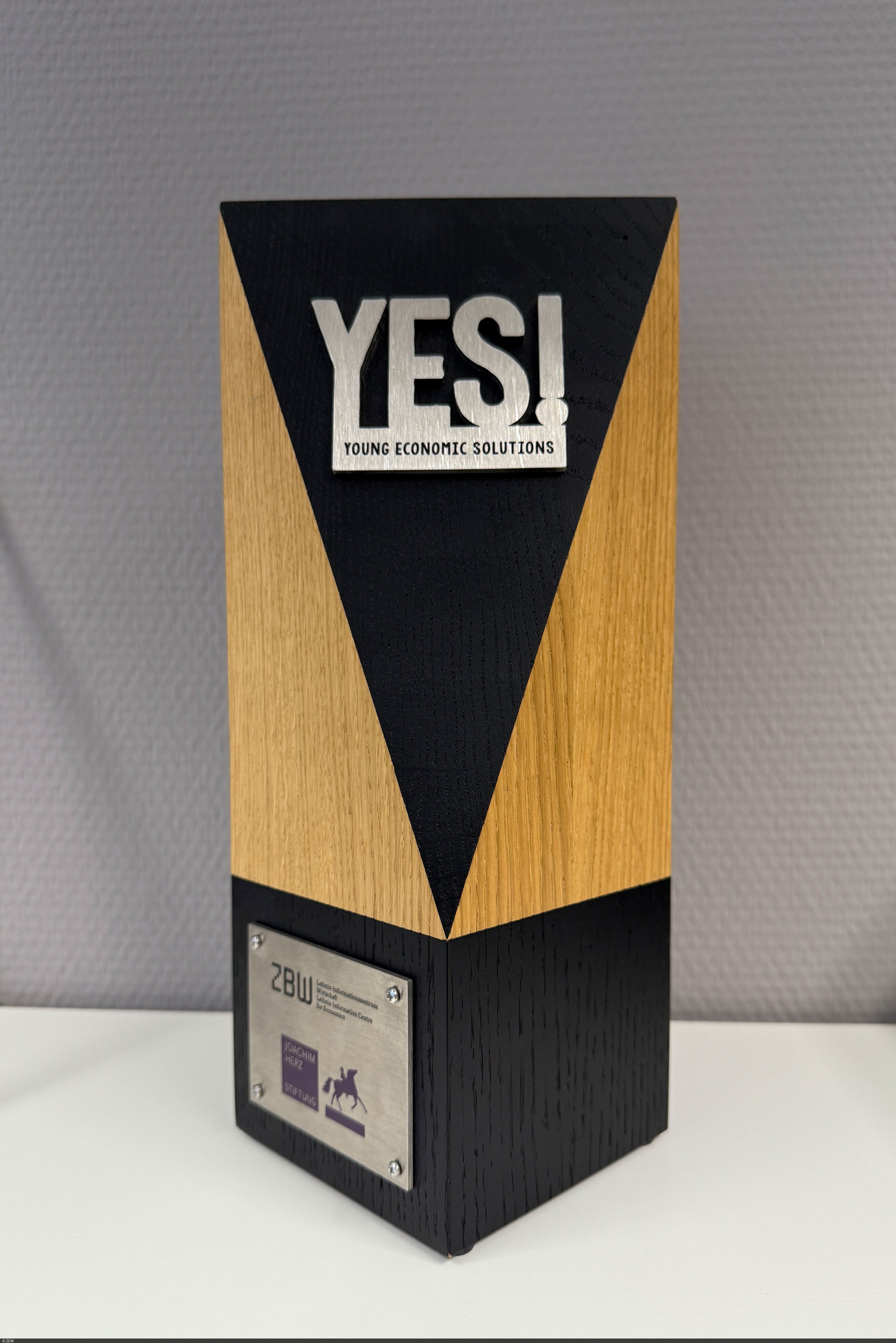 Prof. Dr. Marianne Saam, langjährige Leiterin des Schulwettbewerbs YES! - Young Economic Solutions bei der ZBW (Leibniz-Informationszentrum Wirtschaft in Kiel) übergab den YES! Pokal für den 1. Platz nach 2017-2019 nun für 2025 feierlich an das ZEW. Wir freuen uns sehr über die Auszeichnung und gratulieren allen Beteiligten zu diesem schönen Erfolg!