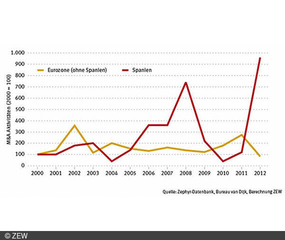 ForschungWährend in der Eurozone ohne Einschluss Spaniens Fusionen und Übernahmen (M&A) in der Baubranche derzeit eher rar sind, ist in Spanien seit Anfang des Jahres 2012 ein drastischer Anstieg der M&A-Aktivitäten zu beobachten. Allein in den ersten sechs Monaten des laufenden Jahres wurden 48 Unternehmenszusammenschlüsse und -übernahmen gezählt. Das sind achtmal mehr Transaktionen als im gesamten Jahr 2011. Diese Dynamik wird sich bis Jahresende und auch im kommenden Jahr voraussichtlich fortsetzen. Zu diesem Ergebnis kommt eine Analyse des Zentrums für Europäische Wirtschaftsforschung (ZEW) auf Grundlage der Zephyr-Datenbank von Bureau van Dijk (BvD), die Informationen zu Unternehmensübernahmen und -zusammenschlüssen, Börsengängen und Private Equity Transaktionen weltweit enthält.