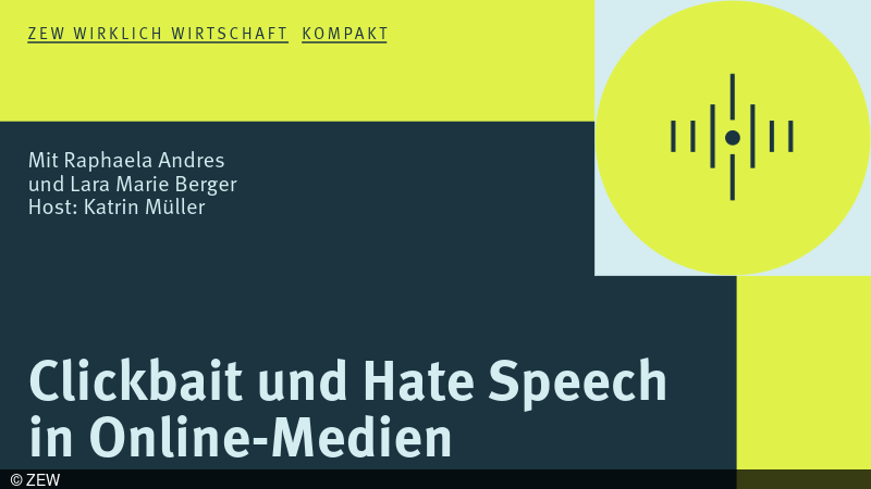 Warum werden Überschriften immer zugespitzter – und was macht das mit den Nutzern/-innen? Im ZEW-Podcast spricht Host Katrin Müller mit den Ökonominnen Dr. Raphaela Andres (ZEW) und Lara Marie Berger (Universität zu Köln) über die Mechanismen digitaler Medienmärkte: Wirkt Regulierung – oder wirkt sie nicht? – und was das Netzwerkdurchsetzungsgesetz messbar verändert. Außerdem: Gegenrede, Fact-Checks, bessere Anreize für Qualitätsjournalismus und Medienbildung? Der Podcast ist auf allen gängigen Podcastplattformen, zum Beispiel auf Spotify, Apple Podcasts oder Deezer, sowie auf der ZEW-Webseite verfügbar.