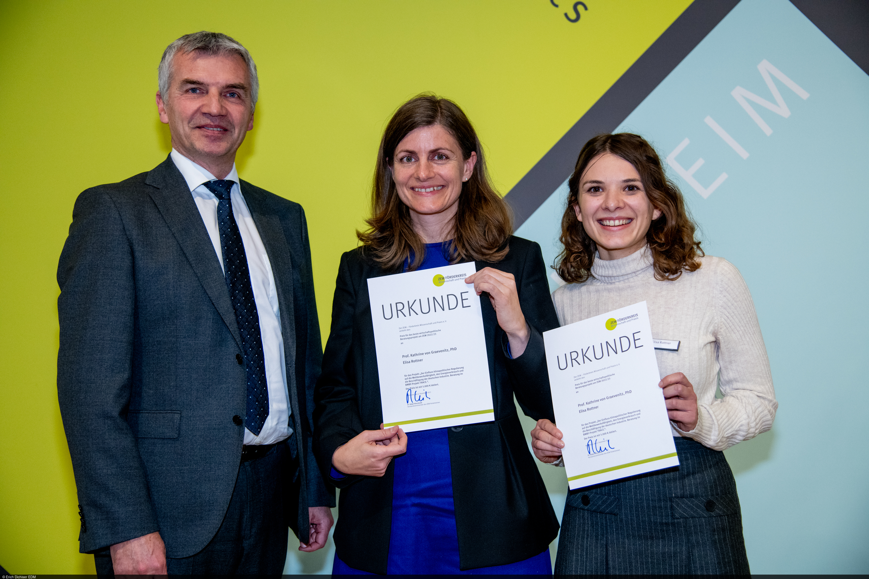 Den Preis für das beste wirtschaftspolitische Beratungsprojekt erhielten die ZEW-Wissenschaftlerinnen Prof. Kathrine von Graevenitz, PhD und Elisa Rottner für das vom Bundesministerium für Bildung und Forschung finanzierte Projekt „TRACE“. Es untersucht die Auswirkungen klimapolitischer Regulierungen im Hinblick auf Wettbewerbsfähigkeit und Energieverbrauch der deutschen Industrie.