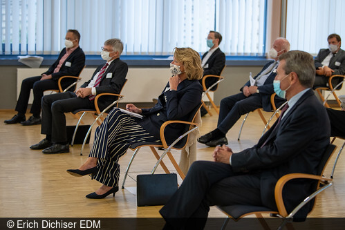 Unter dem Motto „Green Deal für Europa – Grüne Transformation nach Corona?“ diskutierten die Teilnehmer/-innen der Paneldiskussion über Wachstumsmöglichkeiten in Europa vor dem Hintergrund der Klimapolitik der EU. Gerade Baden-Württemberg und seine Automobilindustrie stellt der Green Deal vor eine große Herausforderung. „Man sollte sich nicht zu früh festlegen, dass man die richtige Lösung hat“, sagte Theresia Bauer, Landesministerin für Wissenschaft, Forschung und Kunst. „Wir brauchen Technologieoffenheit und den Mut, die Wissenschaft Lösungen erarbeiten zu lassen.“ Die Landesregierung wolle gemeinsam mit Automobilherstellern und Zulieferern die grüne Transformation anpacken. „Wir müssen auch unsere Hochschullandschaft in Sachen Ingenieursausbildung in rasantem Tempo weiterentwickeln“, so Bauer.