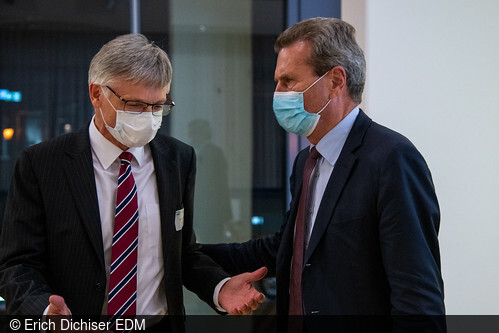 Auch der frühere EU-Kommissar und ehemalige Ministerpräsident des Landes Baden-Württemberg Günther H. Oettinger stellte klar: „Nur wenn der Strukturwandel in der Industrie gelingt und die Industriewertschöpfung hier bleiben kann, werden die Zentral-Osteuropäer mitmachen und auch andere Weltregionen den Green Deal als Vorbild begreifen.“ Er äußerte die Sorge, dass für den Green Deal vorgesehene Finanzmittel nicht streng genug an Auflagen geknüpft seien. „Die länderspezifischen Empfehlungen der EU-Kommission müssen scharf gestellt werden. Ansonsten werden einige Länder das Geld für laufende Ausgaben verwenden. Italien beispielsweise bräuchte eine Reformagenda, um seinen Standort zu ertüchtigen.“ Insgesamt zeigte Oettinger sich vorsichtig optimistisch, was das Ziel der Klimaneutralität im Jahr 2050 angeht: „Wir werden es schaffen, wenn die Forschung neue Technologien hervorbringt, die einen schnelleren Reduktionspfad ermöglichen“, lautete seine Prognose.
