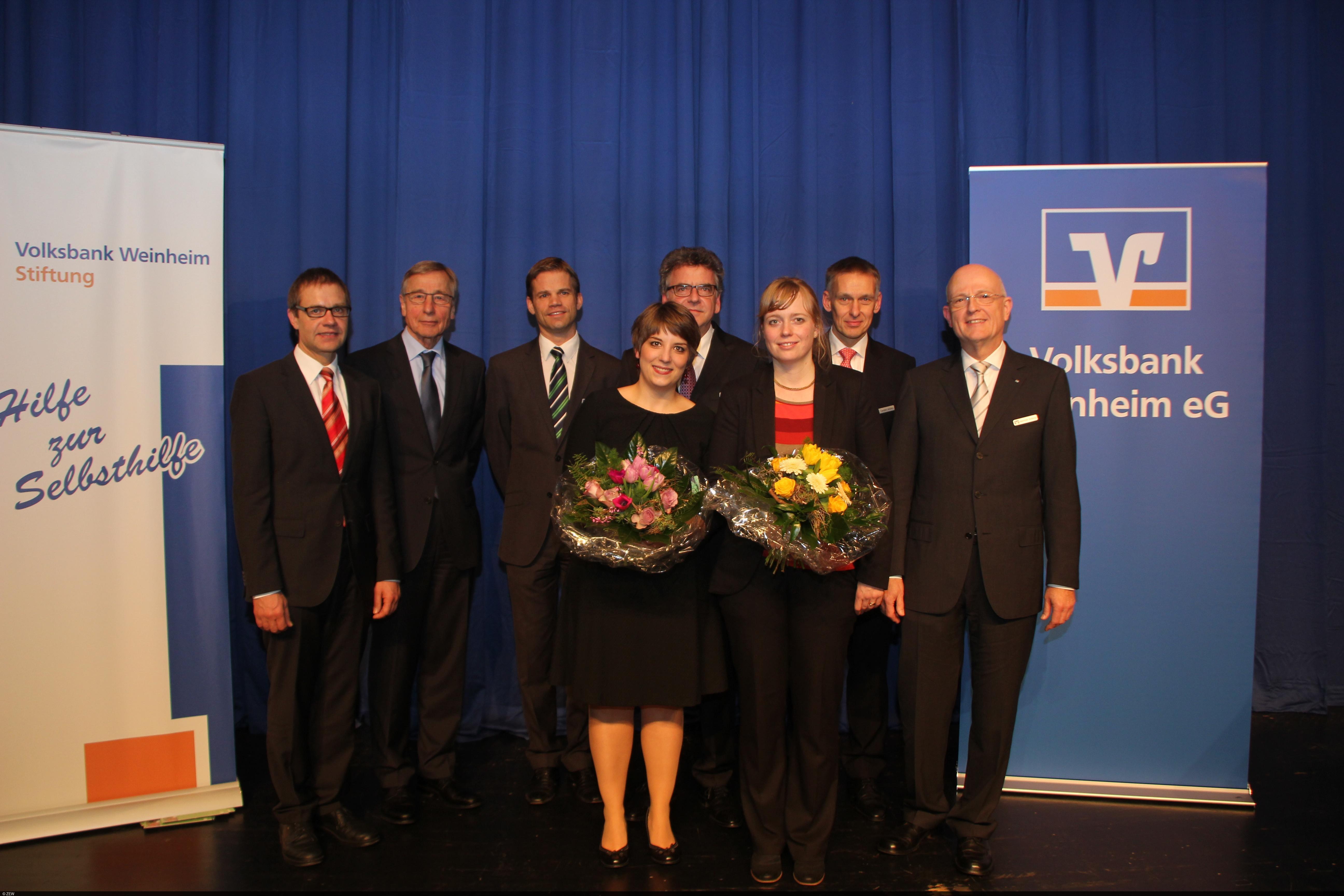 Termine und NachrichtenIm Rahmen des Neujahrsempfangs der Volksbank Weinheim eG wurde erstmals der Wissenschaftspreis "Zukunft der Arbeitswelt" vergeben. Ausgezeichnet werden mit diesem Preis wissenschaftliche Arbeiten, die sich unter anderem mit Themen wie dem demografischen Wandel, Arbeitsbedingungen in Betrieben und Branchen, der Vereinbarkeit von Familie und Beruf oder der Bildung beschäftigen. Das Preisgeld für die beste eingereichte Doktorarbeit beträgt 3.000 Euro, das für die beste eingereichte Masterarbeit 2.000 Euro. Die Preisträgerinnen, für die sich das Auswahlkomitee nach intensiver Prüfung entschieden hat, sind Dr. Pia Pinger, Juniorprofessorin an der Universität Bonn, die an der Universität Mannheim promoviert wurde, und Annette Hillerich, die ihre Masterarbeit ebenfalls an der Universität Mannheim angefertigt hat. Vergeben wird der Preis von der Volksbank Weinheim Stiftung in Zusammenarbeit mit dem Zentrum für Europäische Wirtschaftsforschung (ZEW).