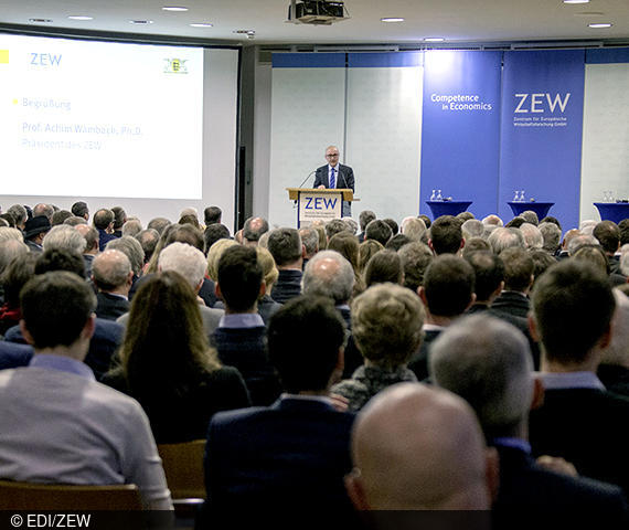 ZEW-Präsident Achim Wambach begrüßt die rund 300 Gäste der Gedenkveranstaltung für Lothar Späth.