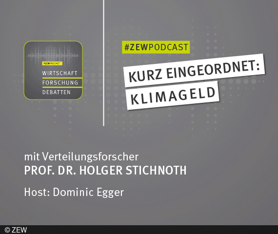 Im neuen Podcast-Fomat „Kurz eingeordnet“ gibt ZEW-Verteilungsforscher Prof. Dr. Holger Stichnoth im Gespräch mit Host Dominic Egger seine ökonomische Einschätzung zum Thema Klimageld und zeigt mögliche Wege für eine faire Entlastung auf. Wie sozial ist das geplante Klimageld wirklich? Wie viel „Klima“ steckt noch im aktuell diskutierten Vorschlag? Und gibt es vielleicht eine bessere Alternative zu einem neuen Sozialtransfer?