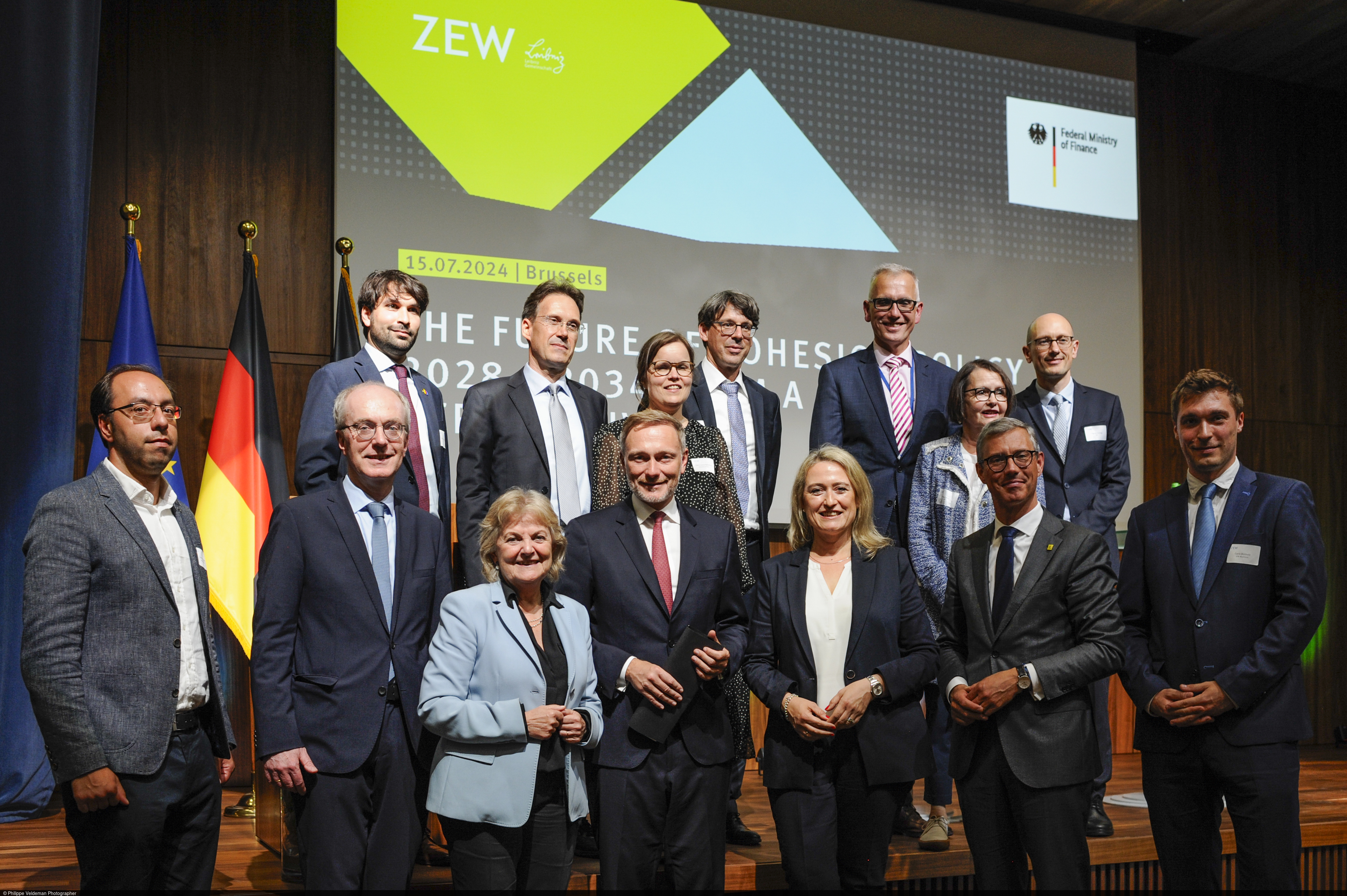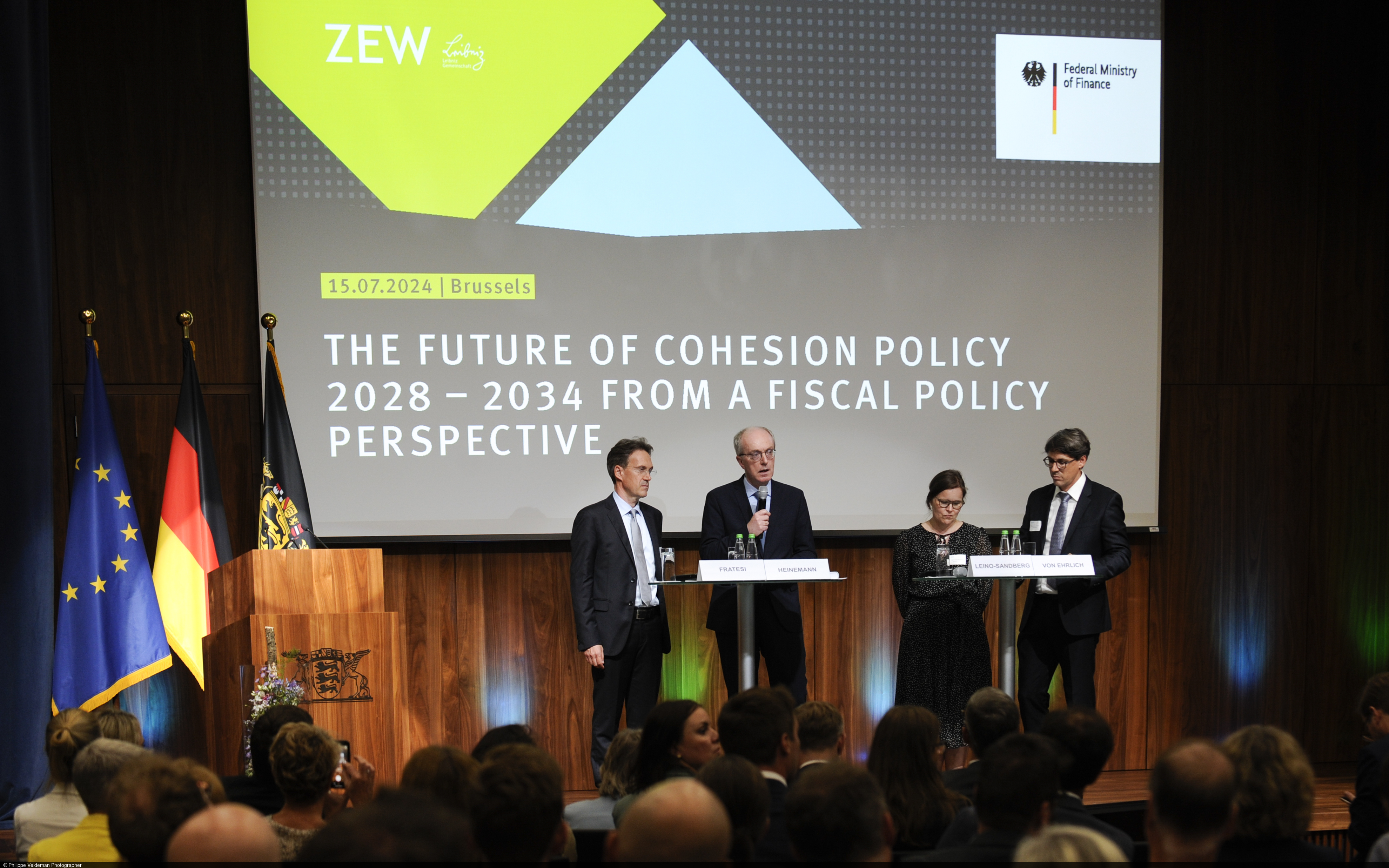 Die EU-Kohäsionspolitik ist ein wichtiges Element der europäischen Solidarität. Sie soll wirtschaftliche und soziale Unterschiede in den europäischen Regionen durch gezielte Investitionen ausgleichen. Gleichzeitig ist die Strukturpolitik milliardenschwer und beansprucht einen beträchtlichen Teil des EU-Haushalts – dies wird gerade in Zeiten klammer Kassen, auch in Brüssel, hinterfragt. Was sind aktuelle Herausforderungen der EU-Kohäsionspolitik und welche Reformansätze gibt es für den kommenden Finanzrahmen? Dazu stellte ZEW-Ökonom Prof. Dr. Friedrich Heinemann am 15. Juli 2024 in der von Bodo Lehmann geleiteten Vertretung des Landes Baden-Württemberg bei der Europäischen Union in Brüssel den Abschlussbericht eines vom Bundesministerium der Finanzen (BMF) geförderten Projekts vor. Vor rund 300 Gästen, darunter sieben EU-Finanzminister/innen, zahlreiche Staatssekretäre/-innen und Botschafter/innen übergab er die Studie an die zuständige Kommissarin für Kohäsion und Reformen, Elisa Ferreira. Christian Lindner, Bundesminister der Finanzen, betonte die hohen Kosten der Strukturpolitik und forderte, dass die bestehenden Ausgabenprogramme auf ihre Wirksamkeit systematisch überprüft werden müssen.