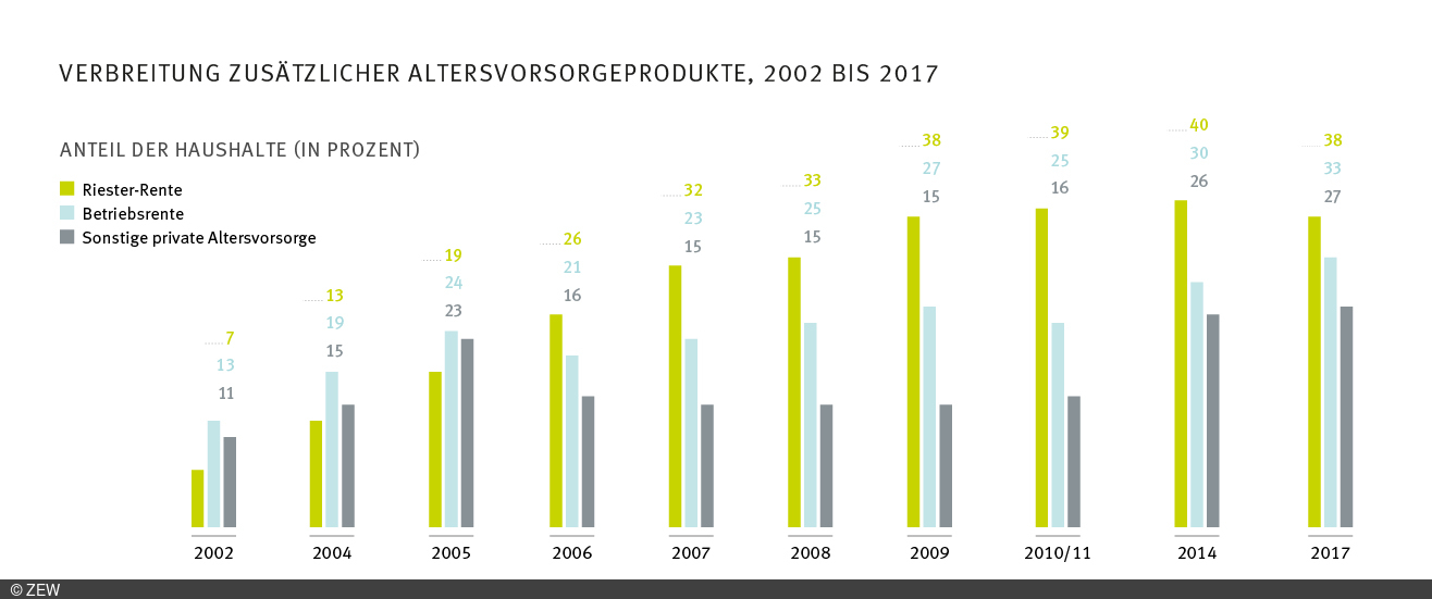 Fast jeder dritte Haushalt besitzt keine zusätzliche Altersvorsorge, dadurch kann es im Alter zu einer Rentenlücke kommen. Zwar hat die private Altersvorsorge – insbesondere durch die Riester-Rente – in den vergangenen zwanzig Jahren große Fortschritte gemacht. Gerade die Riester-Rente geriet aber in die Kritik, weil unter anderem hohe Kosten und teure Beitragsgarantien die Ertragschancen minderten und fehlendes Finanzwissen und schlechte Beratung zu Fehlentscheidungen führten. In den letzten Jahren stagniert die Verbreitung von Riester-Verträgen.