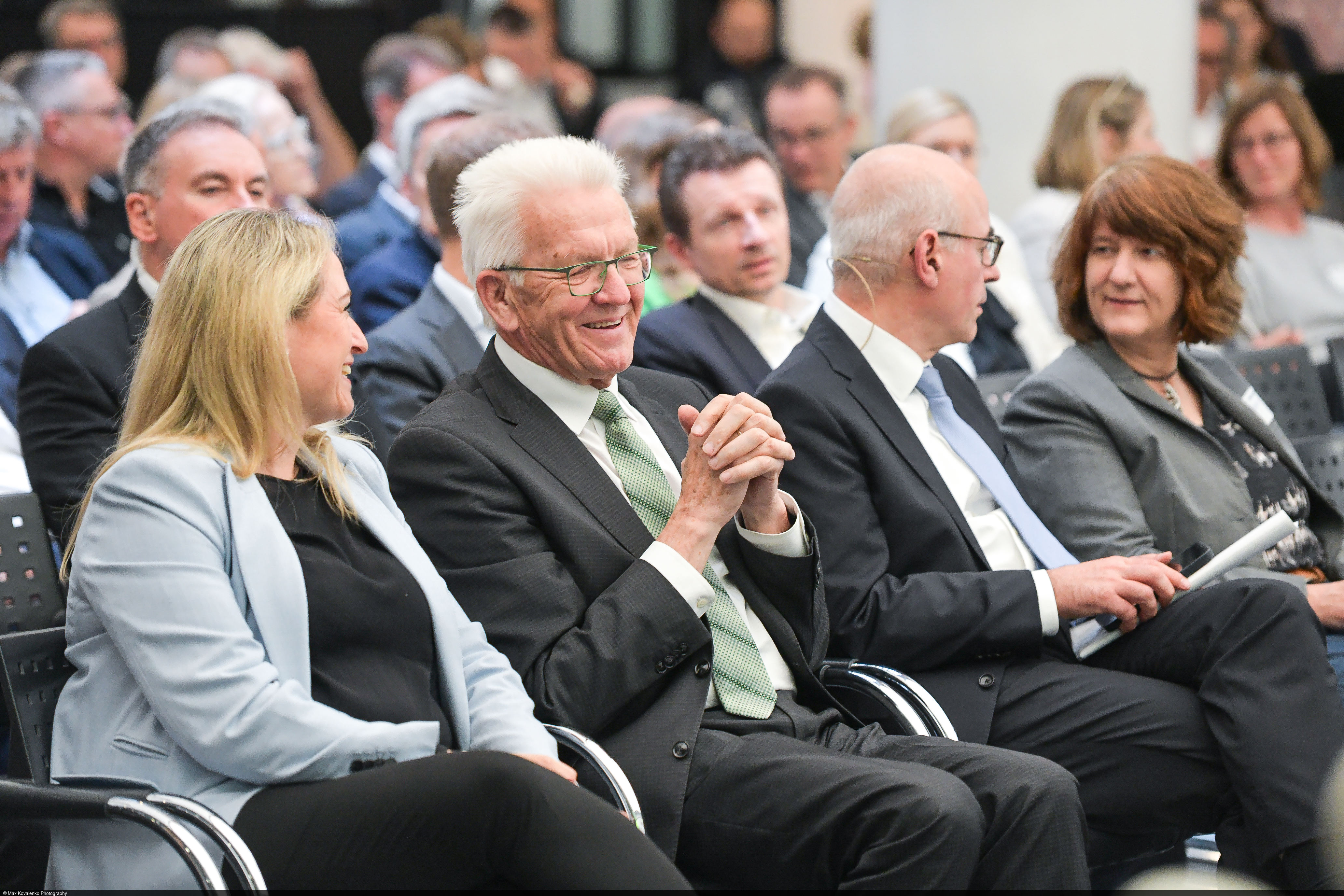 Er selbst, erklärte Kretschmann, habe das Thema KI bereits vor zehn Jahren zur Chefsache gemacht und wolle nun die Hotspots Cyber Valley, KIT und IPAI stärker vernetzen. Die Transformation der Automobilbranche sei historisch, dennoch bleibe die Landesregierung auf Kurs bei E-Mobilität, Digitalisierung und Automatisierung. Die Wirtschaft solle sich breiter aufstellen, und sowohl in der Gesundheitswirtschaft als auch in Zukunftsfeldern wie Luft- und Raumfahrt, Robotik, Quantentechnologie und GreenTech wachsen. Kretschmann forderte zudem einen simplifizierten, digitalen Staat – dafür sei eine umfassende Staatsreform gemeinsam mit dem Bund nötig.