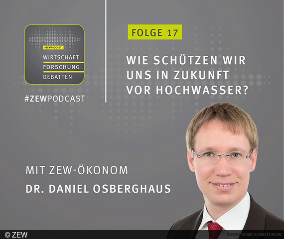 Mehr als 180 Todesopfer hat die Hochwasserkatastrophe im Juli letzten Jahres in Deutschland gefordert. Seitdem stellt sich wieder verstärkt die Frage, wie sich private Haushalte und die Politik besser auf Extremwetterereignisse vorbereiten können. In der 17. Folge des #ZEWPodcasts „Wirtschaft • Forschung • Debatten“ spricht ZEW-Ökonom Dr. Daniel Osberghaus über technische Vorsorgemöglichkeiten für das eigene Haus, welche Vor- und Nachteile eine Versicherungspflicht in Deutschland hätte und wie andere Länder Hochwasservorsorge betreiben.
