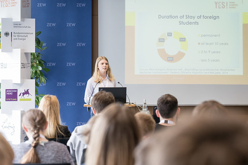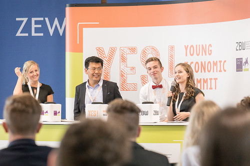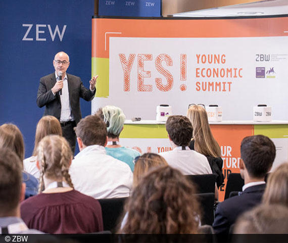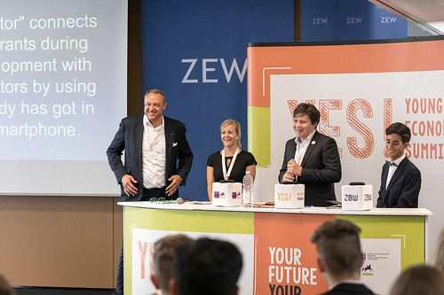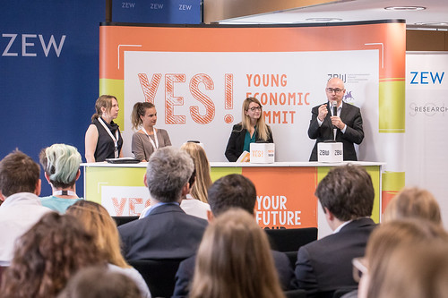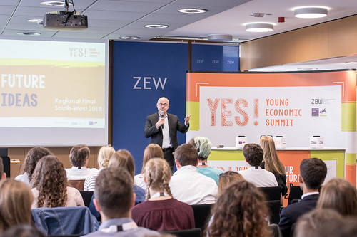 YES! – Young Economic Summit ist einer der größten Schülerwettbewerbe zu globalen Zukunftsfragen in Deutschland. Als gemeinsames Projekt der ZBW (Leibniz-Informationszentrum Wirtschaft) und der Joachim Herz Stiftung steht YES! unter der Schirmherrschaft des Bundesministeriums für Wirtschaft und Energie. Während eines halbjährigen Mentoring-Programms bearbeiten Schülergruppen, aufgeteilt in vier verschiedene Regionen Deutschlands, Fragestellungen zu Zukunftsthemen. Expertinnen und Experten aus mehreren Leibniz-Einrichtungen begleiten sie dabei wissenschaftlich. Und da Nachwuchsförderung am ZEW groß geschrieben wird, waren sich die Wissenschaftler/innen des Forschungsinstituts darin einig, auch im Jahr 2018 wieder den Schülerwettbewerb für die Region Süd-West zu unterstützen.