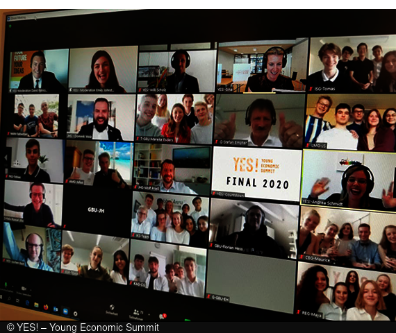 Das YES! – Young Economic Summit ist ein gemeinsames Projekt der ZBW – Leibniz-Informationszentrum Wirtschaft und der Joachim Herz Stiftung aus Hamburg. YES! ist einer der größten Schulwettbewerbe zu globalen Zukunftsfragen in Deutschland. Während eines halbjährigen Mentoring-Programms bearbeiten Schulgruppen Fragestellungen zu Zukunftsthemen. Schüler/innen erarbeiten eigenständig Lösungen für globale ökonomische, ökologische und gesellschaftliche Herausforderungen und präsentieren diese im Rahmen eines Schülerkongresses, dem YES! – Young Economic Summit in englischer Sprache. Expertinnen und Experten aus verschiedenen Forschungs-/Leibniz-Wirtschaftsforschungseinrichtungen begleiten sie dabei wissenschaftlich. Das digitale Regionalfinale mit den Schülerteams aus Südwestdeutschland wird am 6. Juli 2021 am ZEW stattfinden. Beim YES!-Bundesfinale treten im September 2021 dann die besten Teams aus den fünf Regionen Deutschlands gegeneinander an.