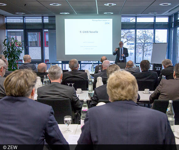 ZEW-Präsident Achim Wambach schildert ZEW-Förderkreismitgliedern die Ziele und Probleme der neunten GWB-Novelle
