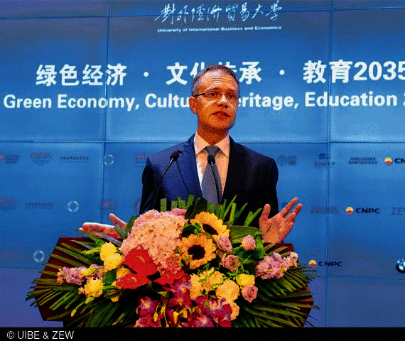Die Veranstaltung unter dem Motto „Green Economy, Cultural Heritage, Education 2035“ bot mehr als 1.000 Teilnehmerinnen und Teilnehmern aus Wissenschaft, Wirtschaft und Politik Vorträge zu den Themen Green Economy, kulturelles Erbe und Bildung 2035. Neben der Umwelt- und Innovationspolitik wurden in achtzehn Sessions Themen wie die Rolle seltener Erden, globale Wertschöpfungsketten, Mobilität in der Zukunft, Bildung sowie diverse kulturelle Aspekte näher beleuchtet. Im Rahmen der Eröffnungszeremonie wurde Thomas Kohl, ZEW-Direktor und Gründungsmitglied des Beijing-Humboldt-Forums, besonders geehrt und seine Gastprofessur an der UIBE feierlich verlängert. Prof. Dr. Zhongxiu Zhao, Vizepräsident der UIBE und BHF-Gründungsmitglied, wurde zum ZEW Research Associate im Forschungsbereich „Umwelt- und Ressourcenökonomik, Umweltmanagement“ ernannt.