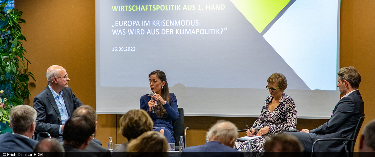 Panel Discussion: Crises as an Opportunity? Companies in Transformation with Klaus Geißdörfer, Nicole Hoffmeister-Kraut, Gitte Neubauer, and Achim Wambach (27.06.2023)