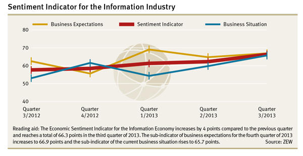 In the first quarter of 2013, optimism among the companies of the information economy concerning the economic trend in the sector has waned. Contrary to these expectations, the companies assess their current business situation significantly more positive than a few months ago. These are the findings of a survey conducted by the Centre for European Economic Research (ZEW) in the information economy sector in December 2012.