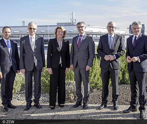 ZEW Director Thomas Kohl with Dr. Alexander Selent, Claudia Diem, Dr. Ralph Rheinboldt, ZEW President Professor Achim Wambach and Dr. Georg Müller (from left to right)