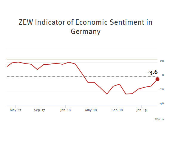 “The significant increase in the ZEW Indicator of Economic Sentiment shows that major economic risks are considered to be less dramatic than before. The possible delay in the Brexit process as well as the renewed hope for a deal on the UK’s withdrawal from the EU seem to have given rise to more optimism among financial market experts. Progress made in the negotiations between China and the US to end the trade war between the two nations may also have contributed. Nevertheless, the ZEW Indicator of Economic Sentiment for Germany points to relatively weak growth in the first half of 2019,” comments ZEW President Professor Achim Wambach.