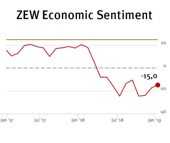 “It is remarkable that the ZEW Economic Sentiment for Germany has not deteriorated further given the large number of global economic risks. The financial market experts have already considerably lowered their expectations for economic growth in the past few months. New, potentially negative factors such as the rejection of the Brexit deal by the British House of Commons and the relatively weak growth in China in the last quarter of 2018 have thus already been anticipated,” comments ZEW President Professor Achim Wambach.