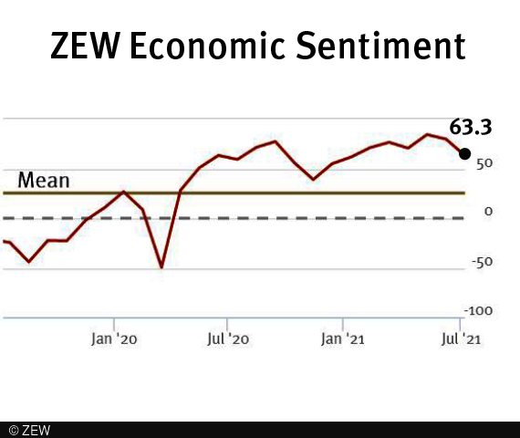 The ZEW Indicator of Economic Sentiment decreased in July 2021.