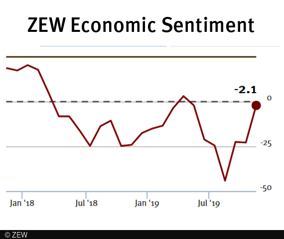“There is growing hope that the international economic policy environment will improve in the near future, which explains the sharp rise in the ZEW Indicator of Economic Sentiment in November. In the meantime, the chances for a agreement between Great Britain and the EU and thus for a regulated withdrawal of Great Britain have noticeably increased. Punitive tariffs on car imports from the EU to the United States are also less likely than the projections a few weeks ago. An agreement in the trade conflict between the USA and China is appearing more likely too,” comments ZEW President Professor Achim Wambach.