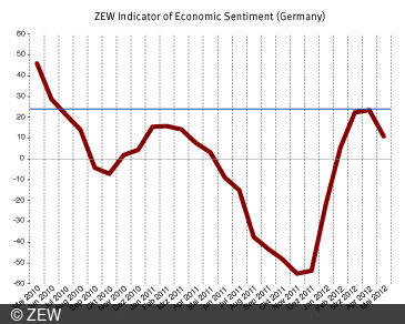 ZEW Indicator of Economic SentimentThe ZEW Indicator of Economic Sentiment for Germany has decreased by 12.6 points to a level of 10.8 points in May 2012. Thus, the indicator has deteriorated for the first time after five consecutive increases.