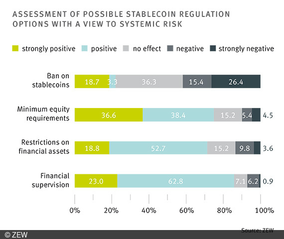 Of the possible options for regulation, the introduction of financial supervision of stablecoin issuers met with the greatest approval. Proposals for restrictions on the financial assets that stablecoin issuers can hold to back the stablecoin and minimum equity requirements for stablecoin issuers were also seen as predominantly positive.