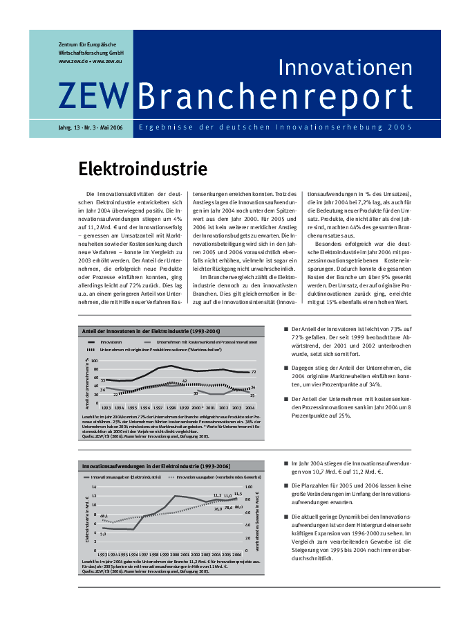 Branchenreport Innovationen // 2005Jahrg. 13, Nr. 3, Mai 2006