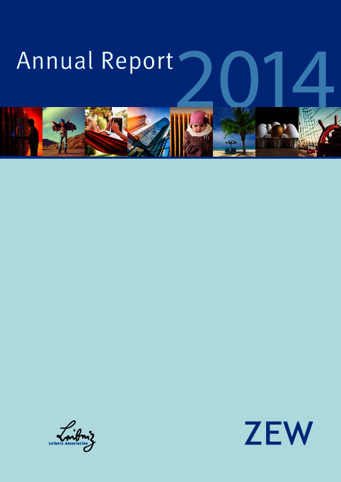 ZEW Annual Report // 2015The Centre for European Economic Research (ZEW) stood its ground in national and international competition in 2014 with a total revenue of about EUR 20 million. The institute successfully reinforced its reputation as an excellent research location. Despite the huge competitive pressure due to European-wide calls for proposals, the research institute considerably increased the share of research contracts awarded by the EU Commission. Projects commissioned by the European Union formed almost 25 per cent of ZEW's third-party funding volume (a total of EUR 9.2 million) in 2014.