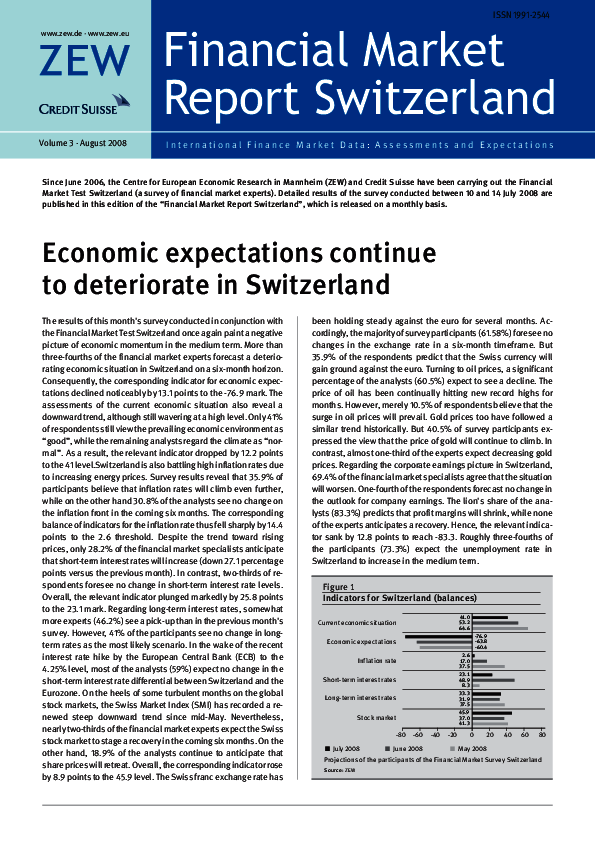 Financial Market Report Switzerland // 2008- Economic Expectations Continue to Deteriorate in Switzerland