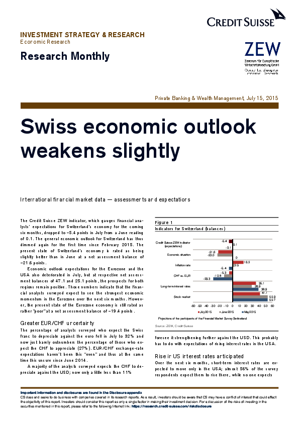 Financial Market Report Switzerland // 2015- Swiss Economic Outlook Weakens Slightly