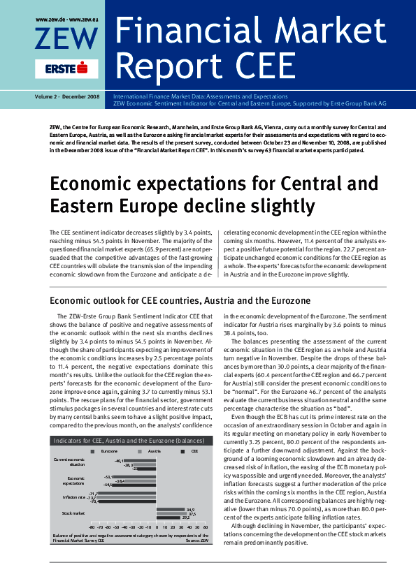 Financial Market Report CEE // 2008- Economic Expectations for Central and Eastern Europe decline slightly