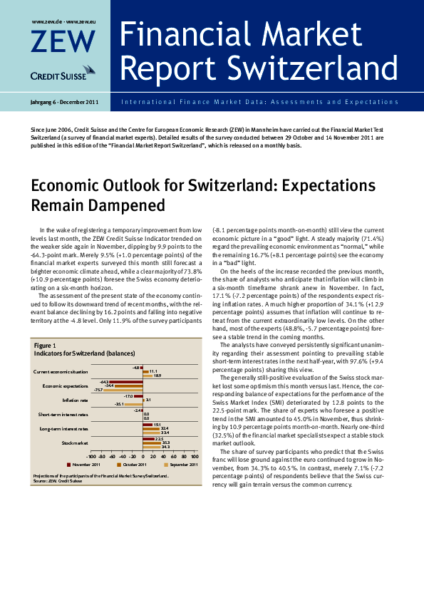 Financial Market Report Switzerland // 2011- Economic Outlook for Switzerland: Expectations Remain Dampened