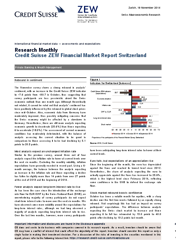 Financial Market Report Switzerland // 2014- Rebound in Sentiment