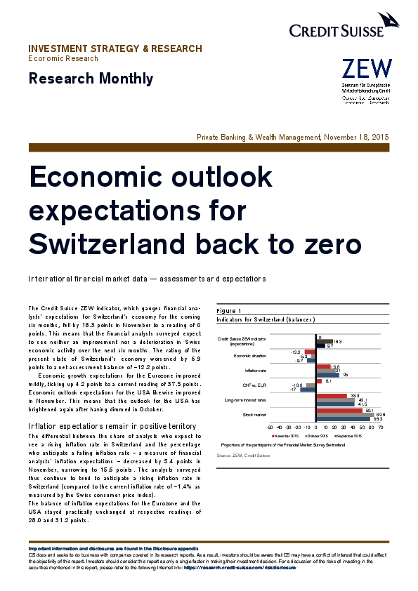 Financial Market Report Switzerland // 2015- Economic Outlook: Expectations for Switzerland Back to Zero