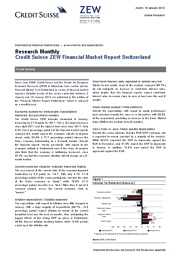 Financial Market Report Switzerland // 2012- Economic Outlook for Switzerland: Expectations Improved, but Pessimism Remains