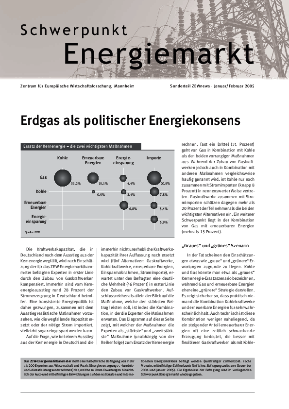 ZEW-Energiemarktbarometer // 2005Erdgas als politischer Energiekonsens