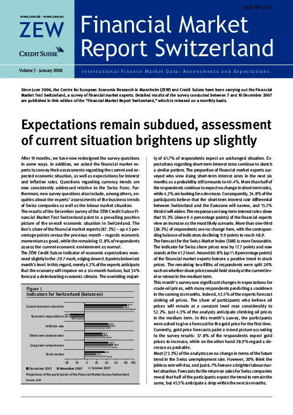 Financial Market Report Switzerland // 2008- Expectations Remain Subdued, Assessment of Current Situation Brightens up Slightly