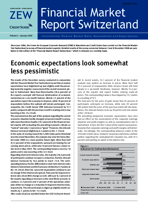 • Switzerland: Economic Expectations Look Somewhat Less Pessimistic