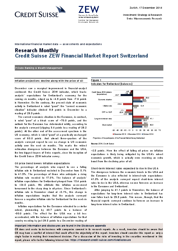 Financial Market Report Switzerland // 2015- Inflation Projections Decline Along With the Price of Oil