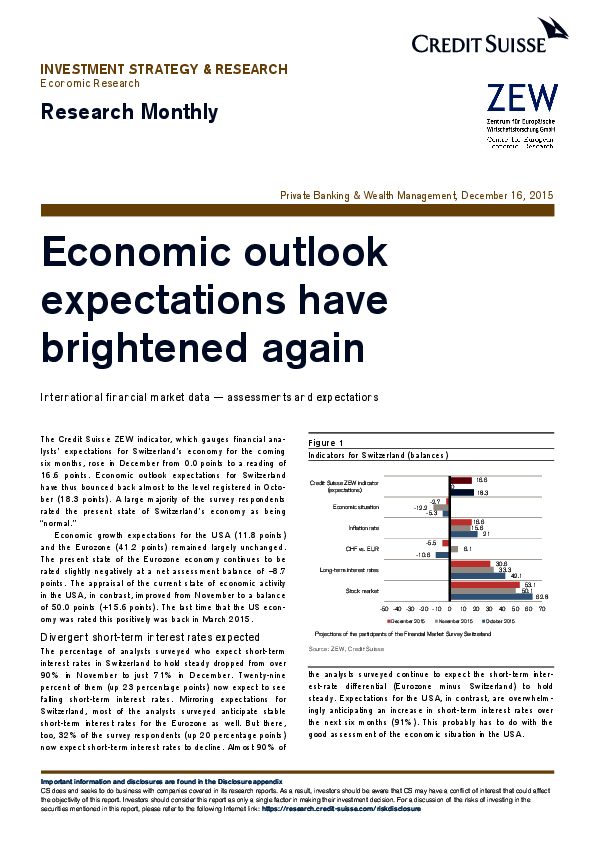 Financial Market Report Switzerland // 2016- Economic Outlook Expectations Have Brightened Again