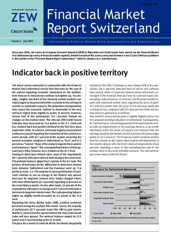 Financial Market Report Switzerland // 2009- Indicator Back in Positive Territory