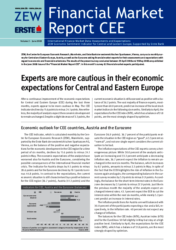 Financial Market Report CEE // 2008- Experts are More Cautious in Their Economic Expectations for Central and Eastern Europe