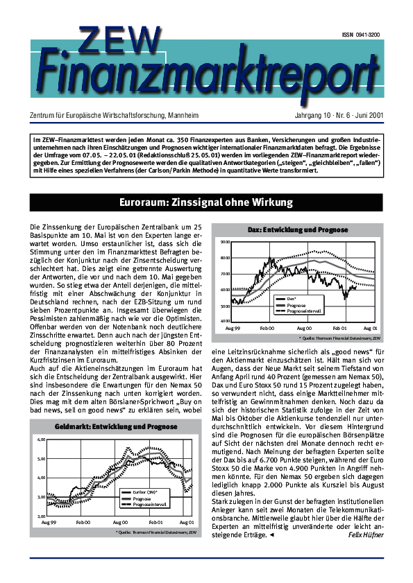 ZEW-Finanzmarktreport // 2001- Euroraum: Zinssignal ohne Wirkung