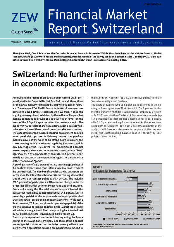 Financial Market Report Switzerland // 2010- Switzerland: No Further Improvement in Economic Expectations
