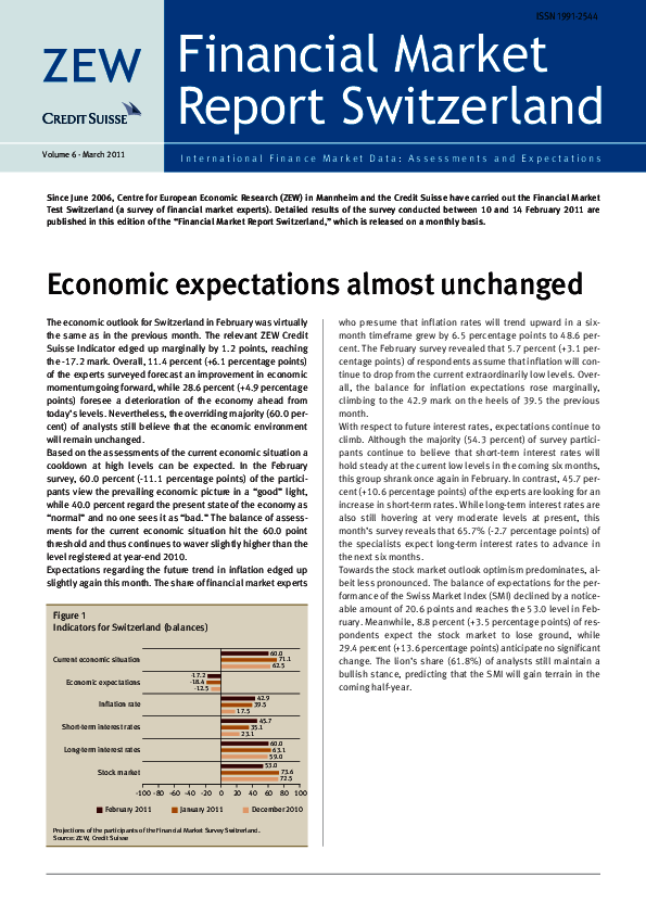 Financial Market Report Switzerland // 2011- Economic Expectations Almost Unchanged