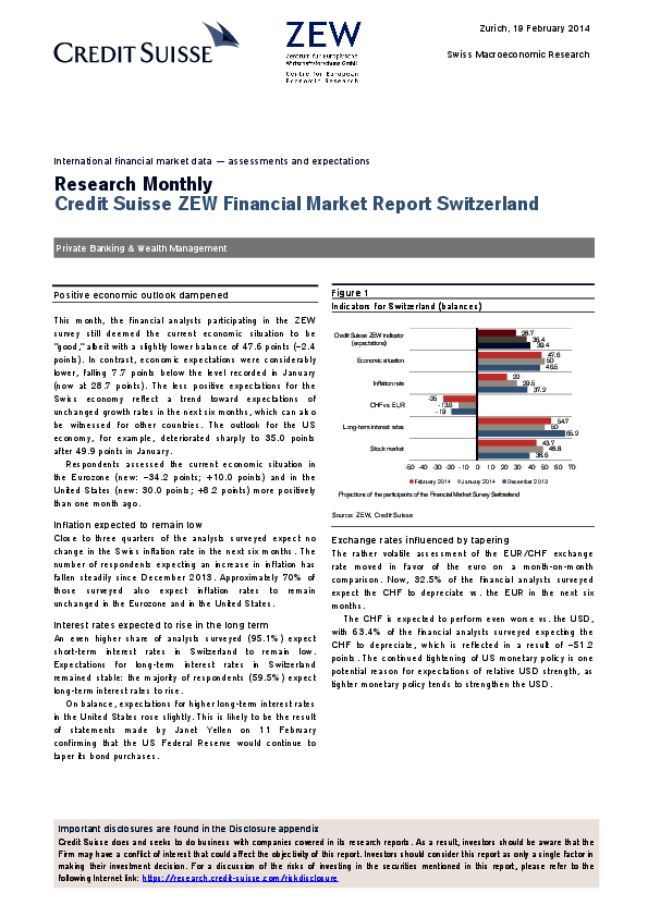 Financial Market Report Switzerland // 2014- Positive Economic Outlook Dampened
