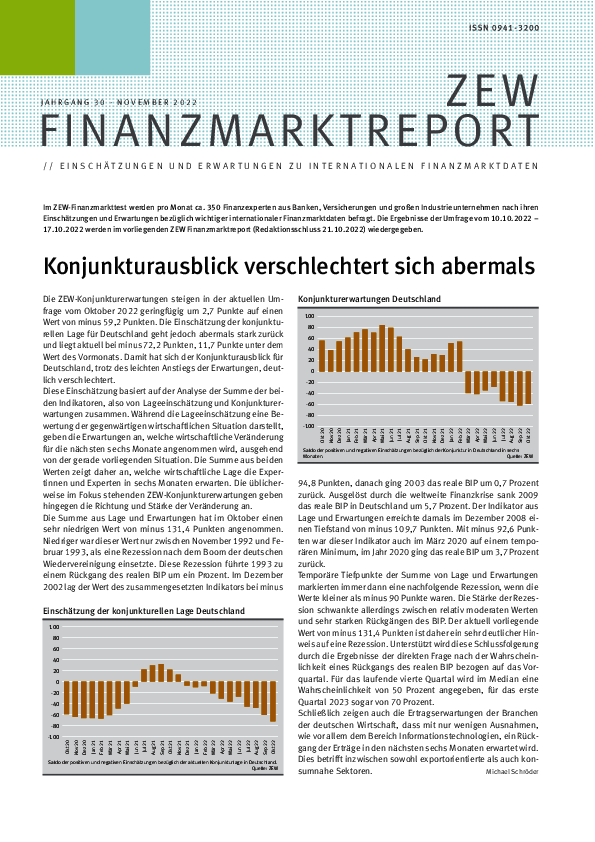 ZEW-Finanzmarktreport // 2022- Konjunkturausblick verschlechtert sich abermals