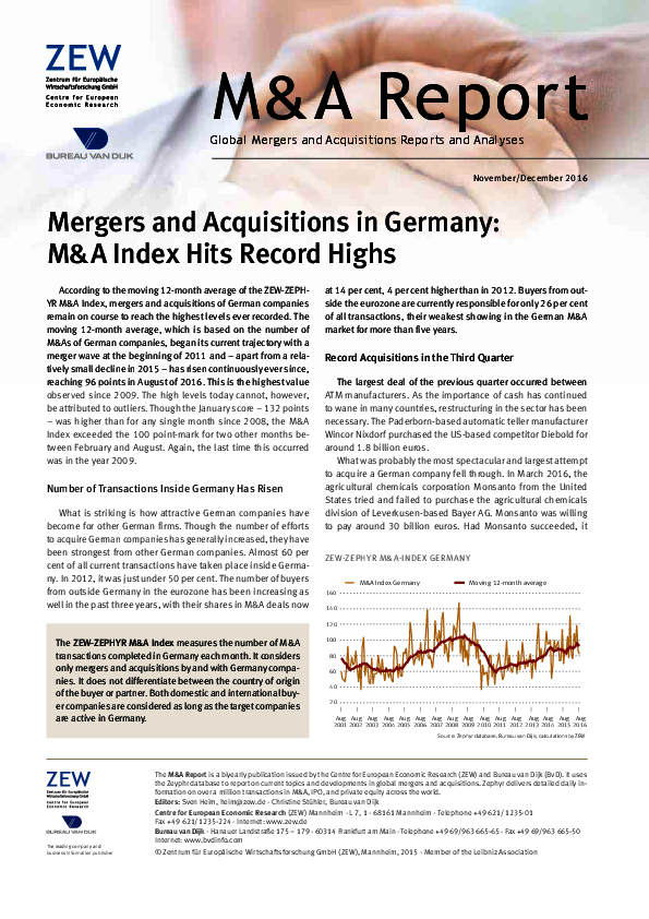 M&A Report // 2016- Mergers and Acquisitions in Germany: M&A Index Hits Record High