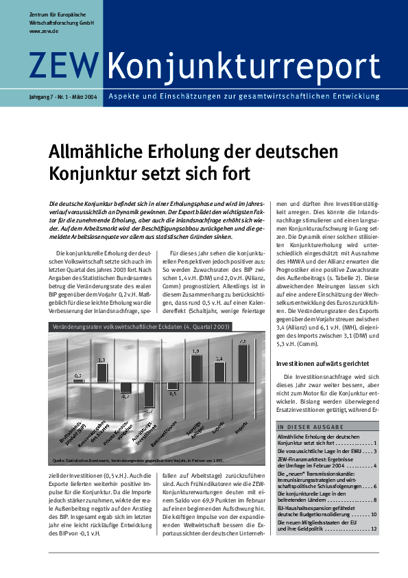 ZEW-Wachstums- und Konjunkturanalysen // 2004- Allmähliche Erholung der deutschen Konjunktur setzt sich fort